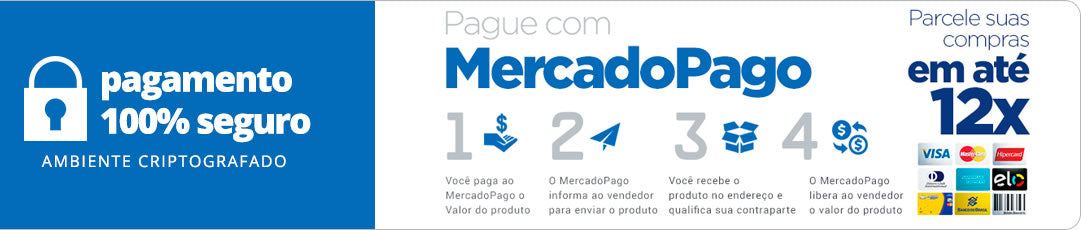 Aceitamos todos os cartões de crédito. Compre também no Boleto à vista